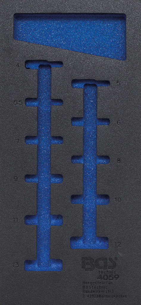 | 6 kotni nasadni ključi 1/4" 4–13 mm globoki v peni 1/3 | z orodjem |