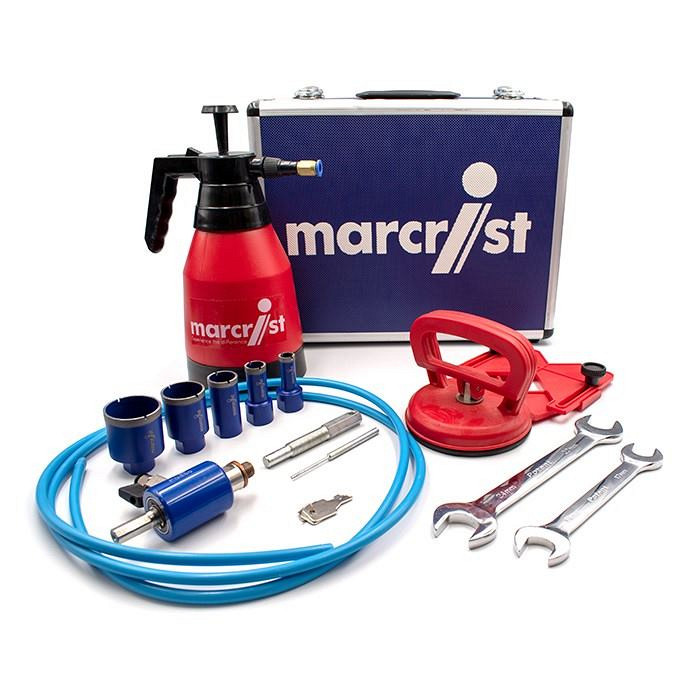 Set vsebuje: Glavo, cev (3m/Ø 8 mm) in tlačno posodo (1l) za vodno hlajenje, univerzalni vakumski vodilni nastavek, izbijača, ključa 10mm in 22mm v...