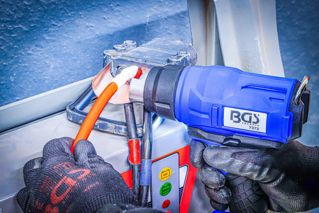Akumulatorska vročozračna pištola 18 V z brezkrtačnim motorjem, temperaturo do 550 °C, pretokom zraka 200 l/min, s funkcijo hitrega segrevanja, zaščito proti pregrevanju, LED osvetlitvijo, nastavljivim kovinskim kavljem in nastavki (ozka šoba, široka šoba, reflektorska šoba); brez baterije in polnilnika.