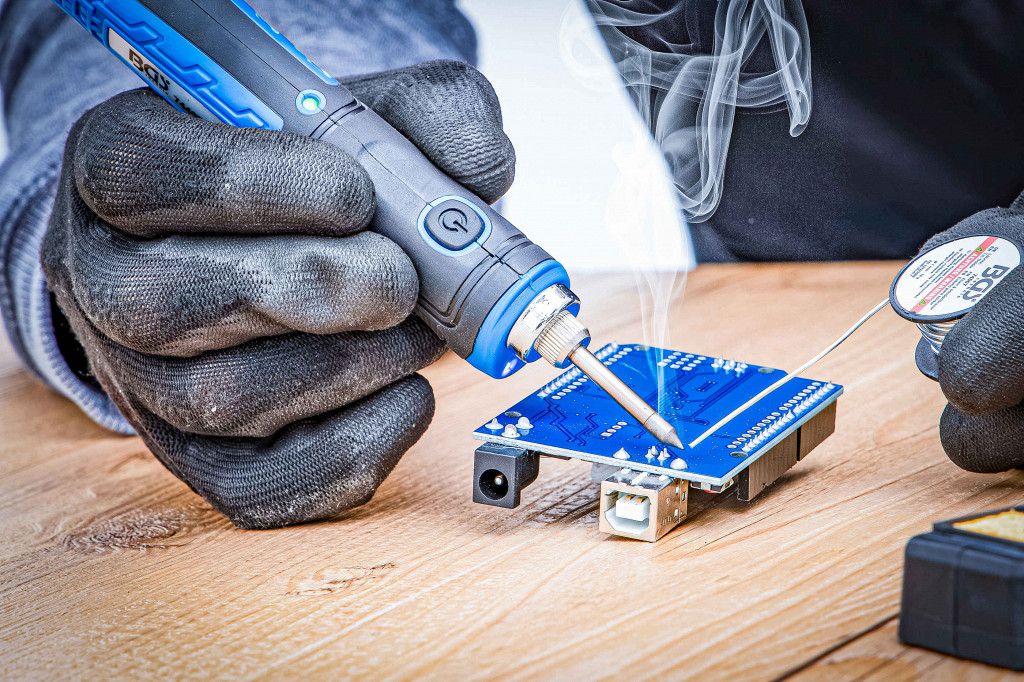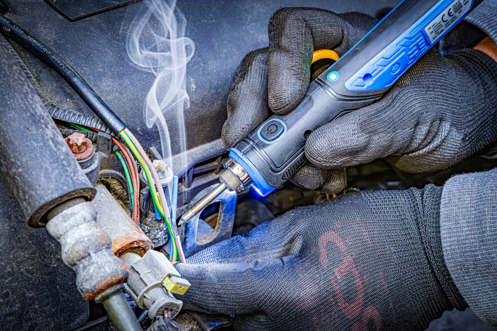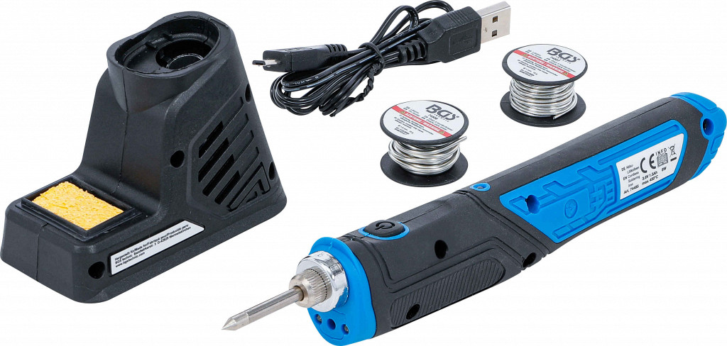 Ne glede na to, ali je v delavnici, na gradbenem območju ali na cestizanesljiv pomočnik za široko paleto spajkalnih delza izdelavo spajkalnih povezav z mehko spajko v električnih in elektronskih aplikacijah brezžično, za prosto delovno območje brez motenj kablovomogoča svobodo gibanja okoli katerega koli delovnega projekta, ne da bi bili vezani na vtičnicokratek čas segrevanja za takojšnjo operativno razpoložljivost in učinkovito delo s fino konico in celo toploto za največjo natančnost, tudi za podrobno spajkanjeergonomska zasnova za priročno delovanjez gumiranim območjem oprijema in LED delovno lučkokratno obdobje segrevanjaAvtomatski izklop po približno 10 minutah se lahko takoj ponovno aktivira z dotikom gumba z LED indikatorsko lučko za obratovalno stanje in postopek polnjenjaSkladiščna postaja z integriranim gobovim pladnjem za čiščenje spajkalnih konicSincl. USB polnilni kabel .. temperatura: 450 °C delovni čas: 45 min. priporočeni polnilnik (ni vključen v obseg dobave): USB-A | 5 V | min. 500 mA.obseg dobave: 1 spajkalnik s spajkalno konico1 polnilni kabel (USB)1 postaja z vgrajenim pladnjem za gobo1 spajkalnik | Žična tuljava | brez svinca | Ø 1 mm | 10 g (BGS 74507)1 kositr-spajka | Žična tuljava | brez svinca | Ø 1,5 mm | 10 g (BGS 74508)