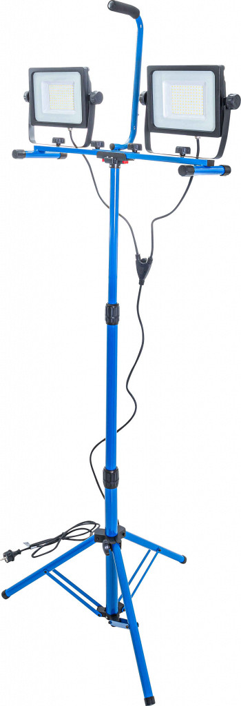 Za popolno osvetlitev temnih delovnih površin, ki se uporablja kot delovna poplavna luč za obnovo, lakiranje ali popravilo avtomobilovdva delovna reflektorja, ki ju je mogoče po želji in posamično vrtiti, prinašata svetlobo v poljubno želeno smerKomponente SMD imajo zelo kompaktno zasnovo in so značilne z visokim lumnom in dolgo življenjsko dobo, dva svetla SMD LED elementa s 120 LED diodami vsaka trpežna aluminijasta ohišja s teleskopskim cevastim jeklenim stojalom, zaščiteno pred vodo, primerno za notranje in zunanje prostore Uporaba Nosilec svetilke z ročajem in stojalom nastavljivim po višiniOmrežni kabel za upravljanje obeh stranskih luči prek ene vtičniceŽivljenjska doba svetlobnega vira: 50000 urSvetlost: max. 2 x 7000 lumnovbarvna temperatura: 6000 - 6500 Ktemperatura shranjevanja: pod +60 °C