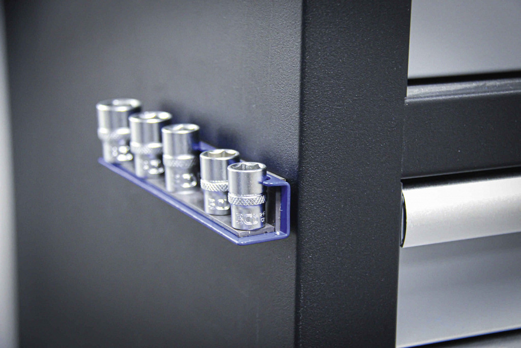 Za držanje 10 nasadnih ključev, ki jih drži magnetni trak, z močnim magnetom.