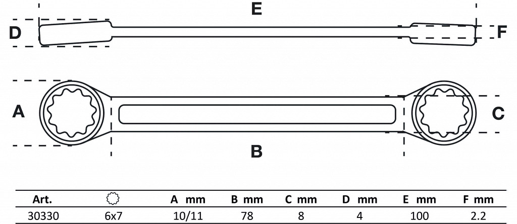 Dvojni obročni ključ ekstra ploščat | 6 x 7 mm |