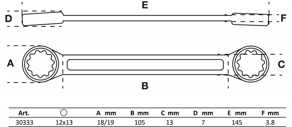 Dvojni obročni ključ ekstra ploščat | 12 x 13 mm |