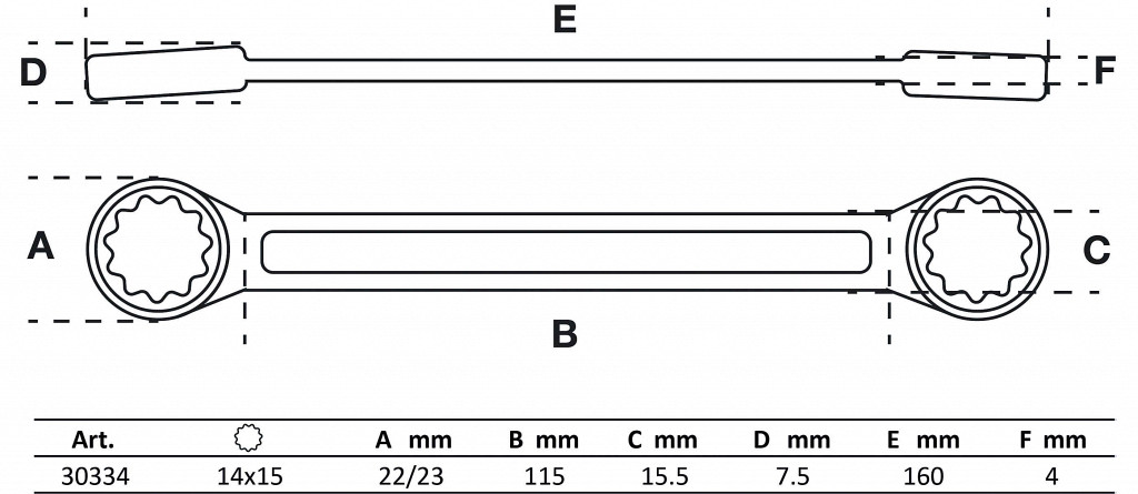 Dvojni obročni ključ ekstra ploščat | 14 x 15 mm |