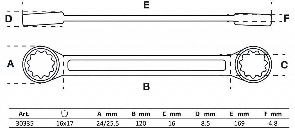Dvojni obročni ključ ekstra ploščat | 16 x 17 mm |