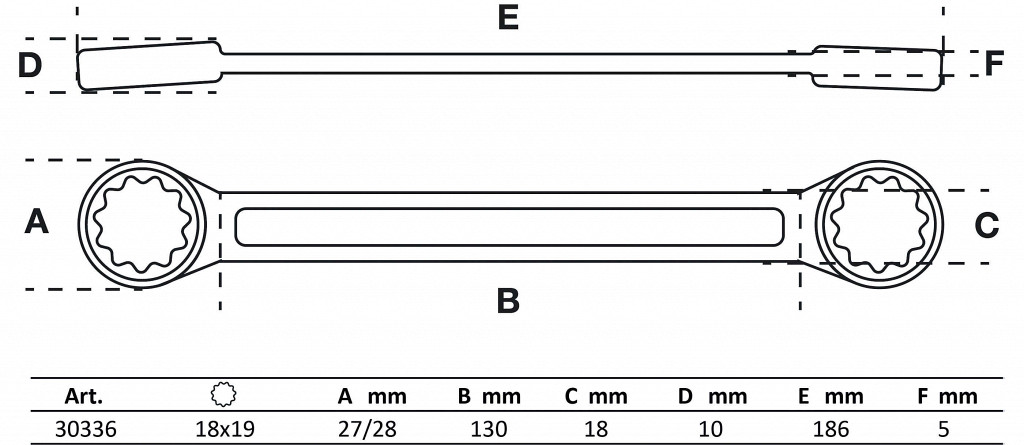 Dvojni obročni ključ ekstra ploščat | 18 x 19 mm |