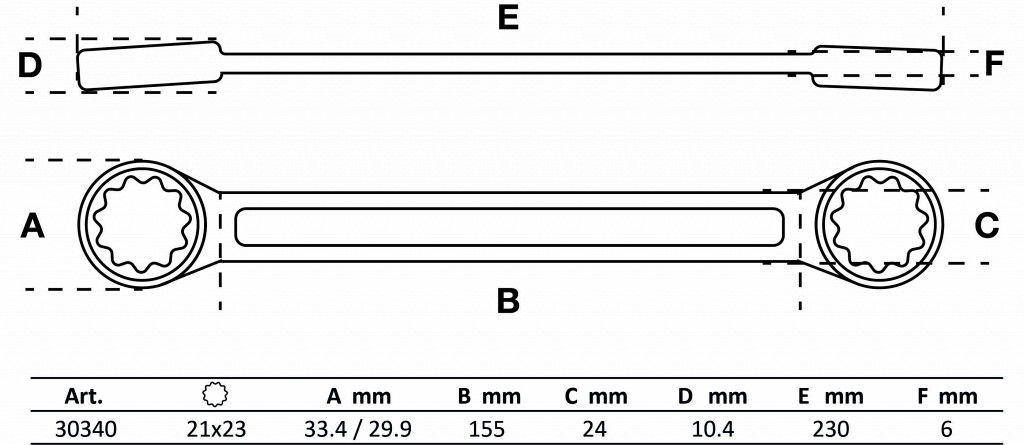 Dvojni obročni ključ ekstra ploščat | 21 x 23 mm |