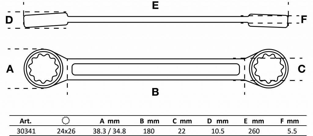 Dvojni obročni ključ ekstra ploščat | 24 x 26 mm |