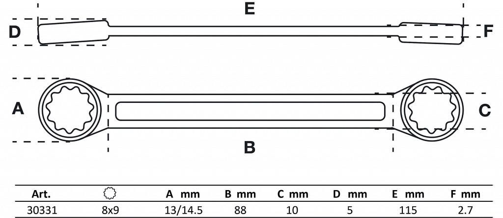 Dvojni obročni ključ ekstra ploščat | 8 x 9 mm |