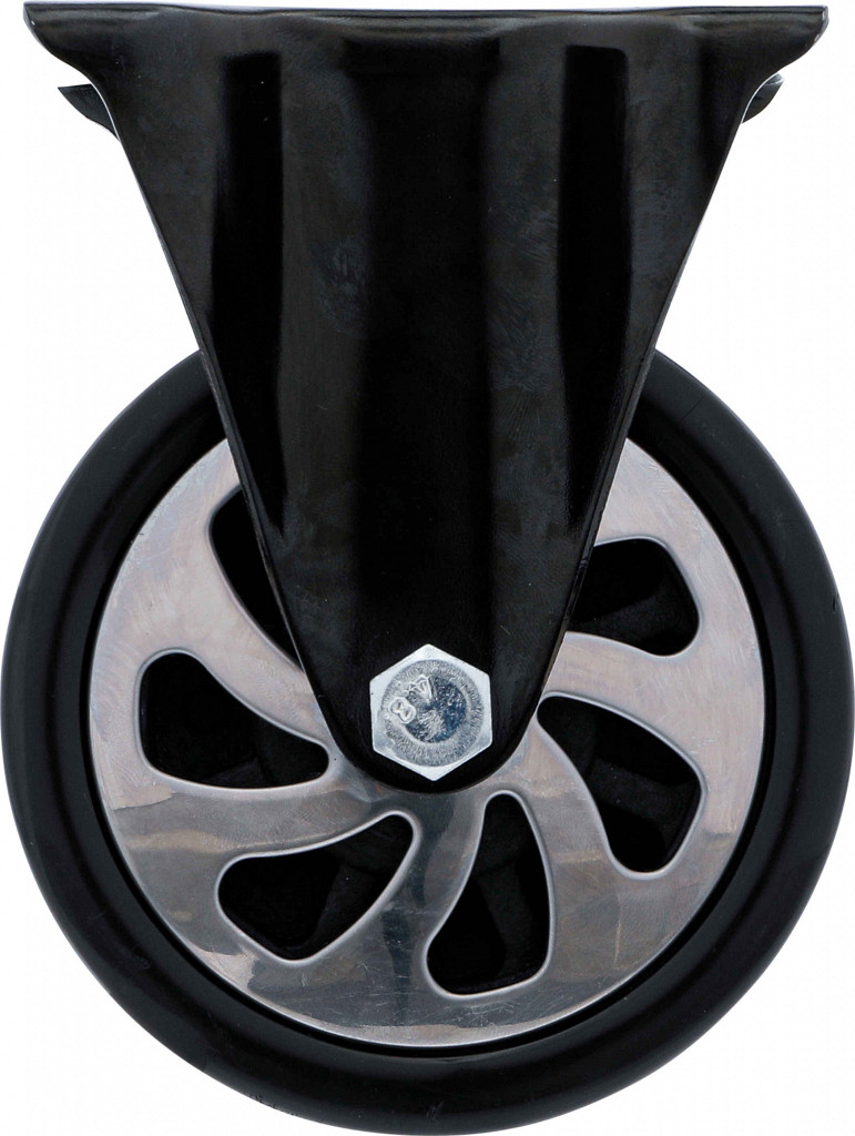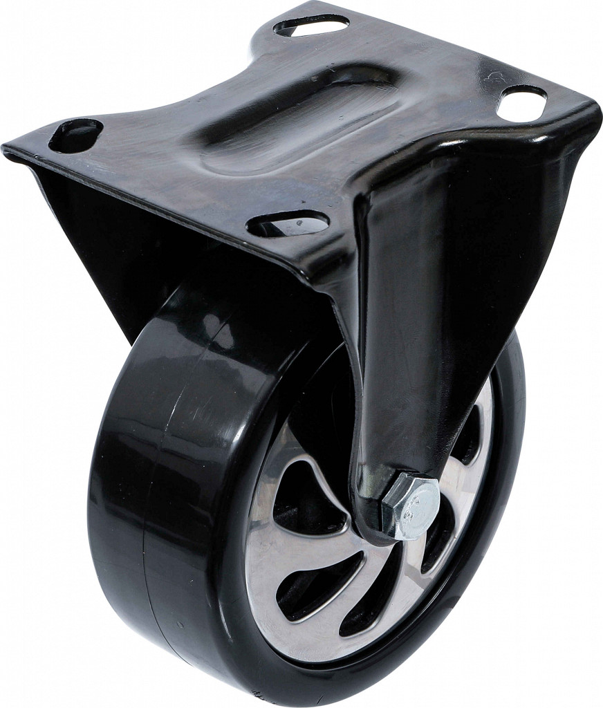 Primerno za vozičke za orodje BGS 4107, 4204, 4205, 4206, 4199, plastično kolo s krogličnimi ležaji in montažno ploščo, širina montažne plošče 105 mm, dolžina montažne plošče 115 mm, debelina materiala plošče 2,6 mm, razmak lukenj krajša stran 70 mm, razmak lukenj daljša stran 85 mm, skupna višina 164 mm, širina kolesa 48 mm.