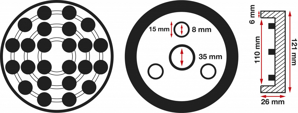 Zunanji premer: 120 mm; Bruto teža: 180 g; Višina: 26 mm; Notranji premer: 110 mm; Material: SBR guma