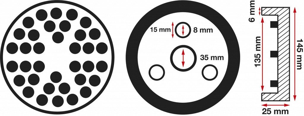 Zunanji premer: 145 mm; bruto teža: 258 g; Višina: 26 mm; Notranji premer: 135 mm; Material: SBR guma