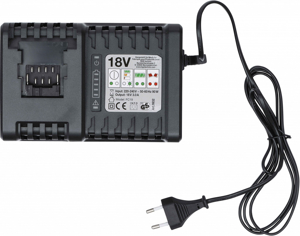 Rezervni/del za brezžični udarni ključ BGS 9928; vhod polnilnika: 220 - 240 V, 50 - 60 Hz, 90 W; izhod: 18 V, 3,0 Ah