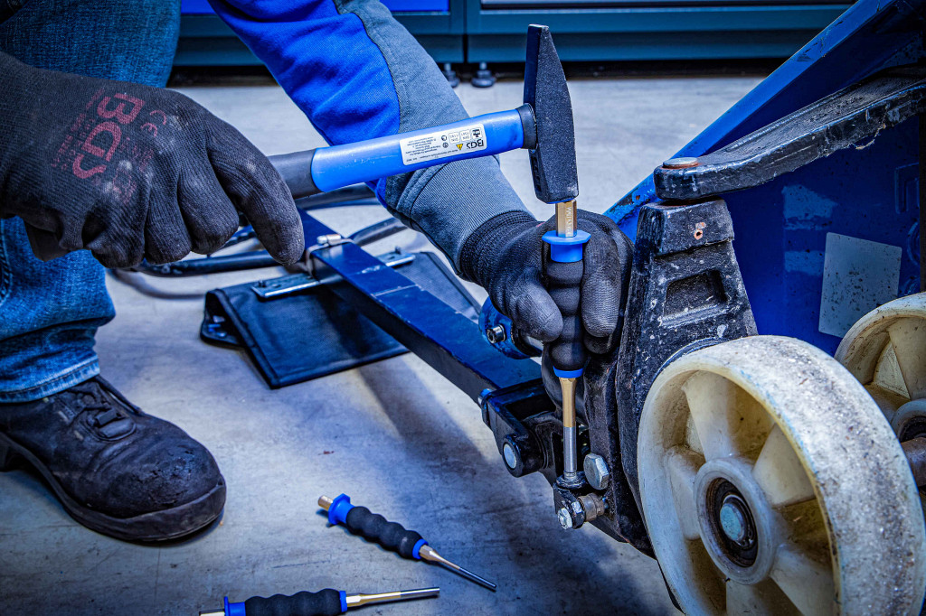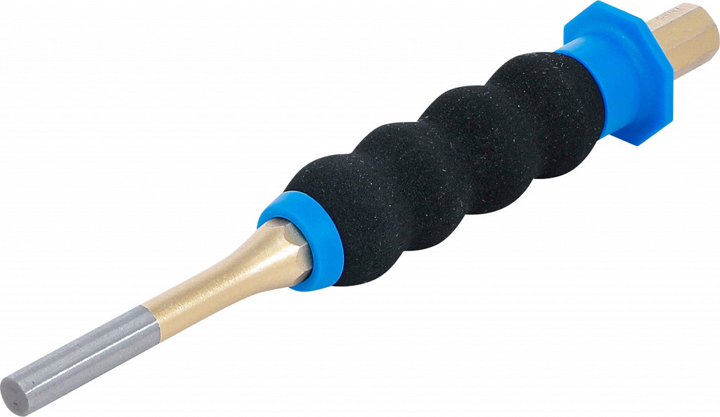 Za varno in enostavno izbijanje razcepnih zatičev, osmerokoten steblo, cilindrična oblika, ergonomski protizdrsni ročaj, varen oprijem, zmanjšano tresenje...