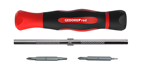 4-v-1 funkcija: 1 ročaj, 1 klina za natančni nosilec bitov, 1x dvojni bit PH 00 in SL 1,5, 1x dvojni bit PH 0 in SL 3. Zaklepanje z zadrževalno kroglico za varen oprijem bitov. Ergonomski 2-komponentni ročaj: kombinacija trdih in mehkih območij za udobno in natančno delo.