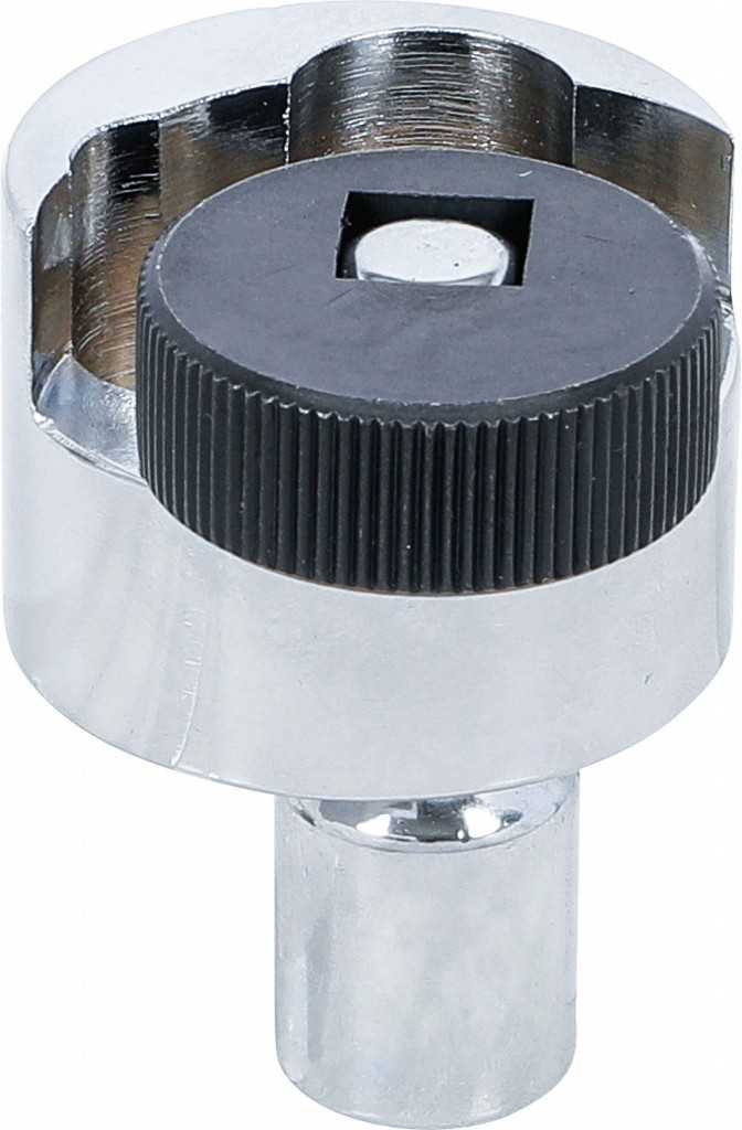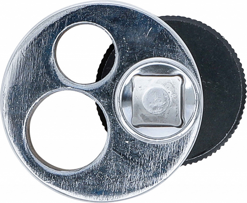 Nastavek za odvijanje zagozdenih čepov, primeren za čepaste vijake premera 6–19 mm, s kaljenim in nazobčanim oprijemnim kolesom.