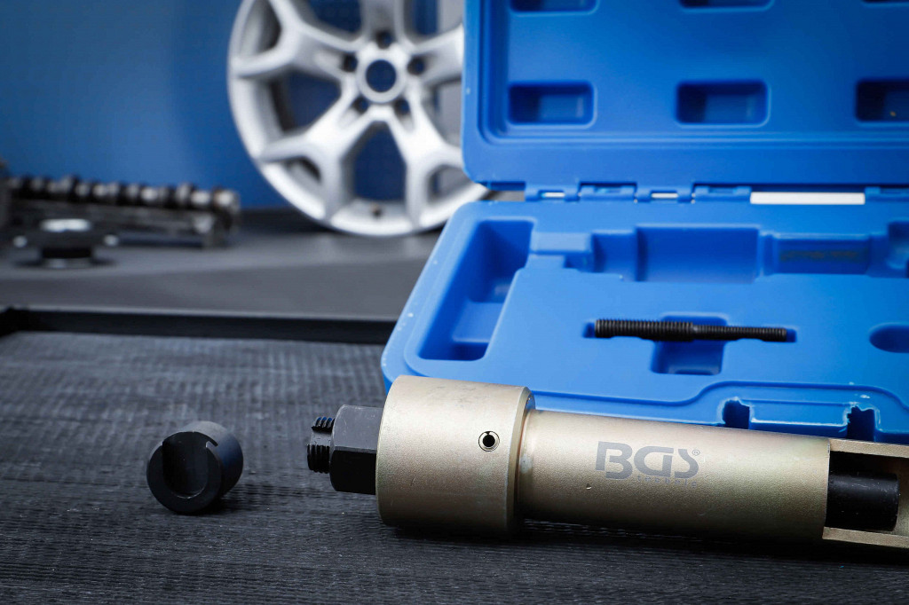 Izvlečno orodje za gred in vijake vodil verige, primerno za Fiat Ducato, BMW in Mercedes motorje. Vsebina: izvlekač z navojem, primež in vijaki M6 in M8.