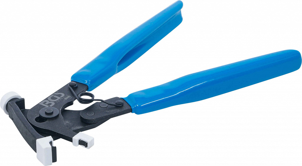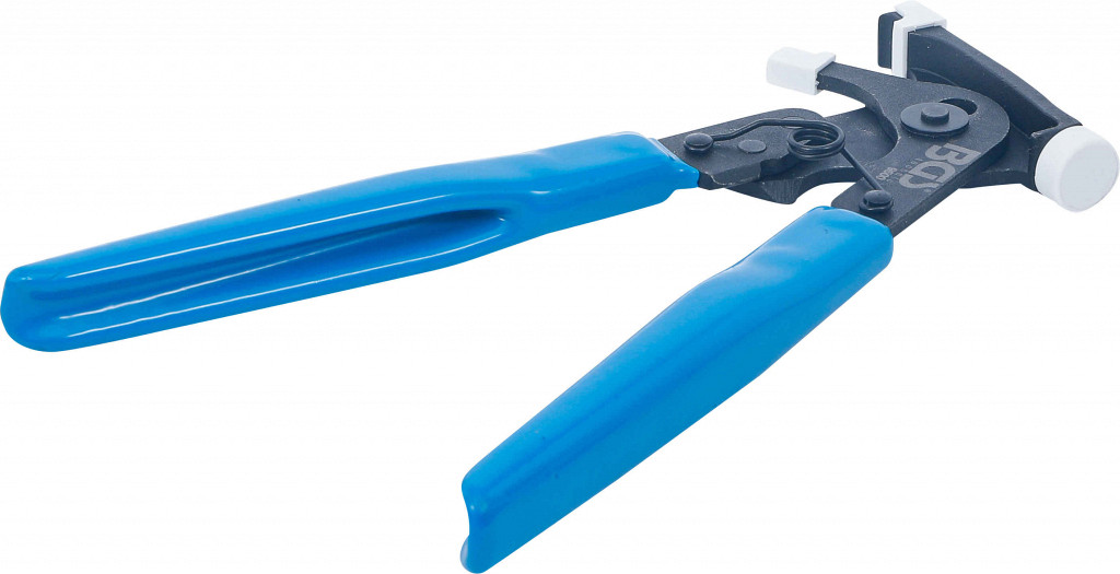 Klešče z ozkim profilom za odstranjevanje lepljenih uteži. Glava s plastično zaščito preprečuje poškodbe aluminijastih platišč. Ročaji prevlečeni z modro plastiko. Samodejno odpiranje z notranjo vzmetjo.