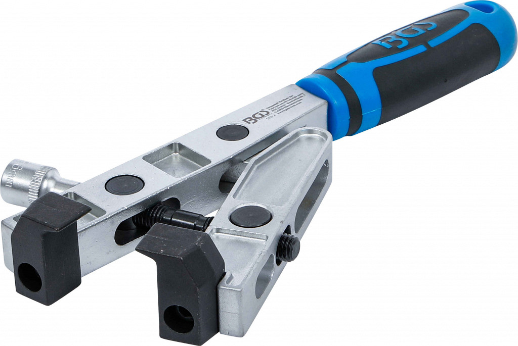 Kotne objemke pod 90°, za bočno vpenjanje in vzporedno stiskanje ušesne objemke, posebej primerne za ozke prostore, notranji kvadratni priklop 10 mm (3/8") za uporabo z momentnim ključem, primerne tudi za inox objemke in visoke momente.