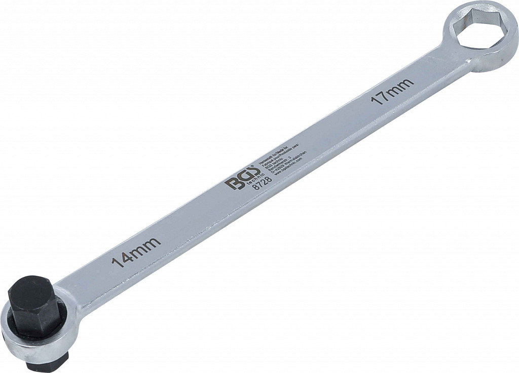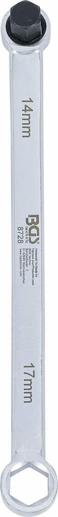 Obročni ključ 17 mm z notranjim šesterokotnim nastavkom 14 mm, rahlo ukrivljen.