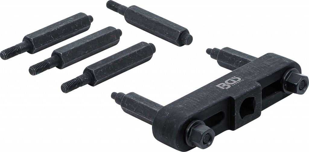 Za sproščanje in zategovanje luknjastih matic na pestah koles zadnje osinastavljiva razdalja čepov 50 - 100 mmvsebuje 3 pare vijakov s premerom 5,5 / 6,8 / 9,1 mm (M8 x 1,25)primerna za luknje z različnimi premeri lukenj in razdaljami.obseg dobave:. 1 orodni most1 par zatičev 5,5 mm (M8 x 1,25)1 par zatičev 6,8 mm (M8 x 1,25)1 par zatičev 9,1 mm (M8 x 1,25)2 matici (M8 x 1,25)
