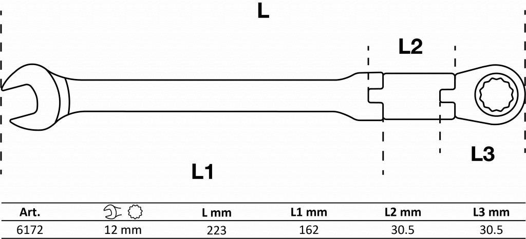 | Kombiniran ključ s pregibno dvosmerno ragljo | 12 mm |