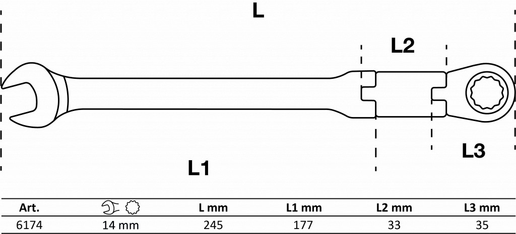 | Kombiniran ključ s pregibno dvosmerno ragljo | 14 mm |