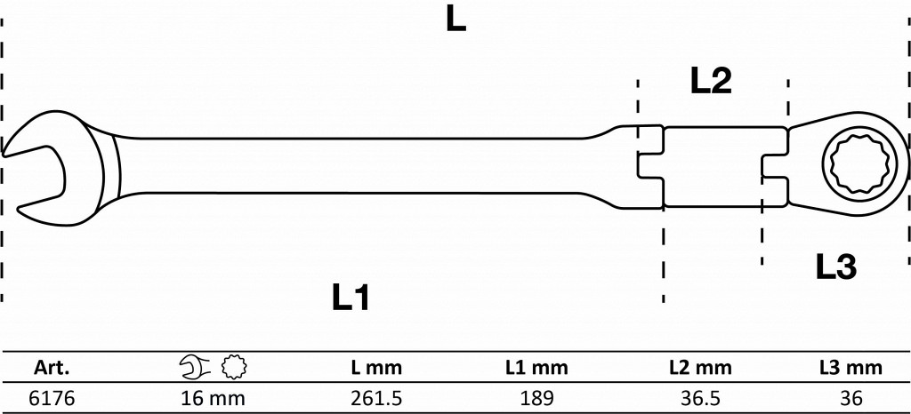 | Kombiniran ključ s pregibno dvosmerno ragljo | 16 mm |