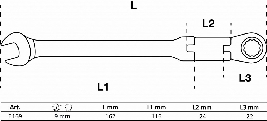 | Kombiniran ključ s pregibno dvosmerno ragljo | 9 mm |