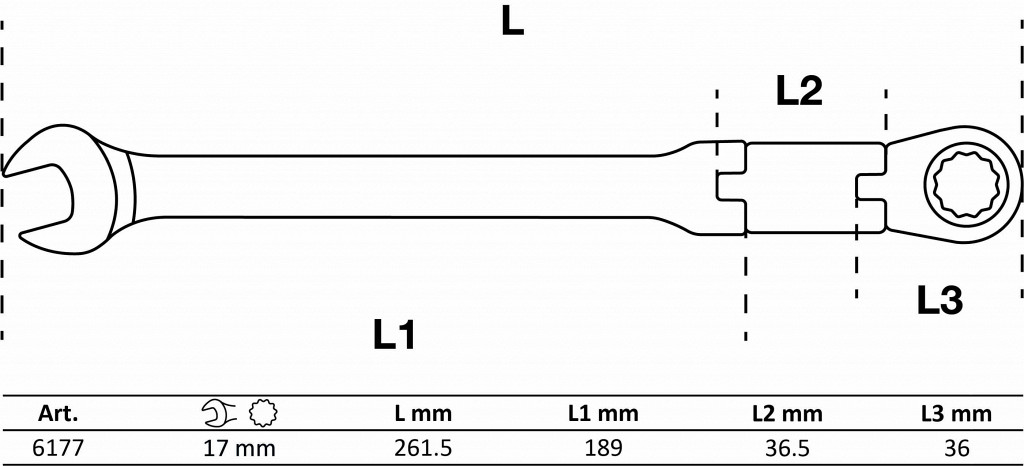 | Kombiniran ključ s pregibno dvosmerno ragljo | 17 mm |