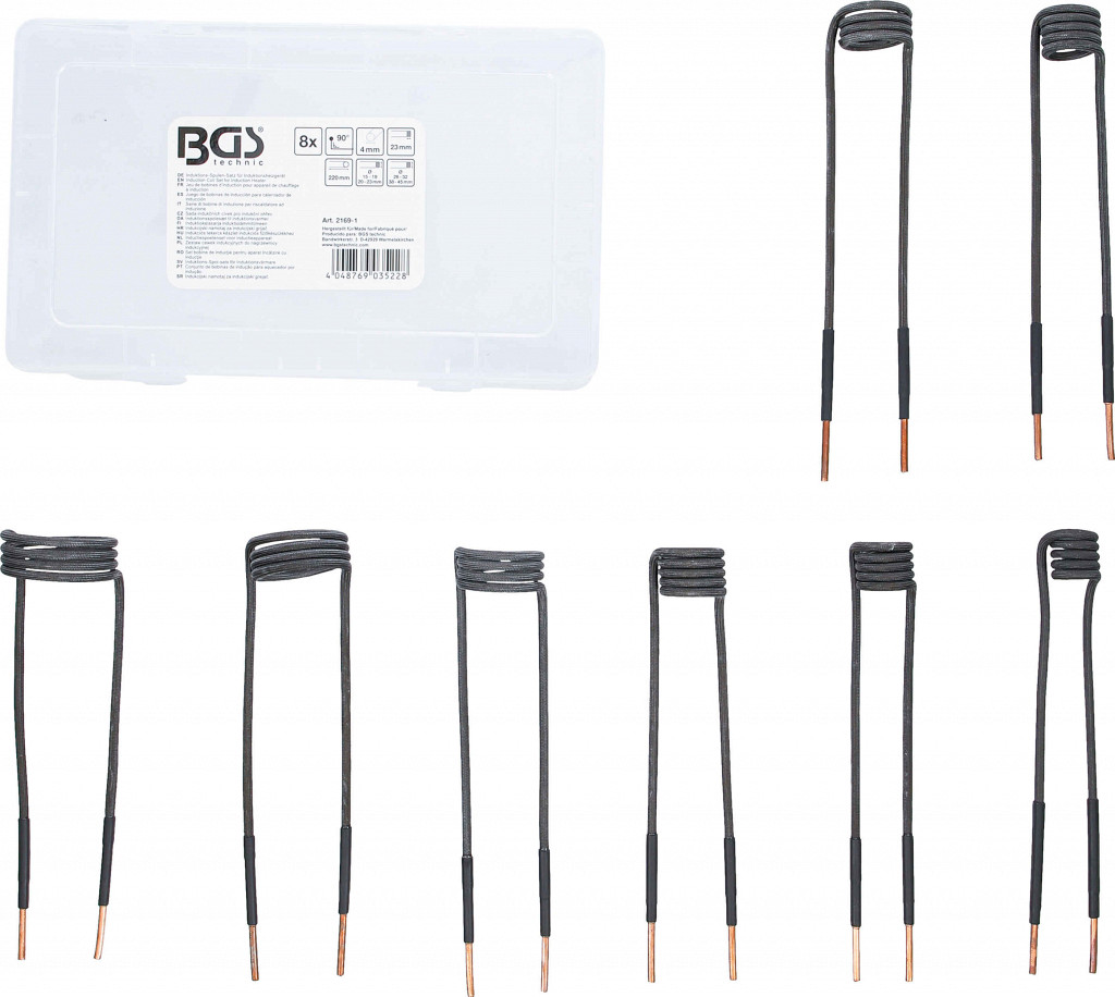 Za segrevanje vijakov, matic, gredi ipd., primerno za indukcijske grelce BGS 2169, 3390, 3391; izvedba pod kotom 90°, premer žice 4 mm, višina tuljave...
