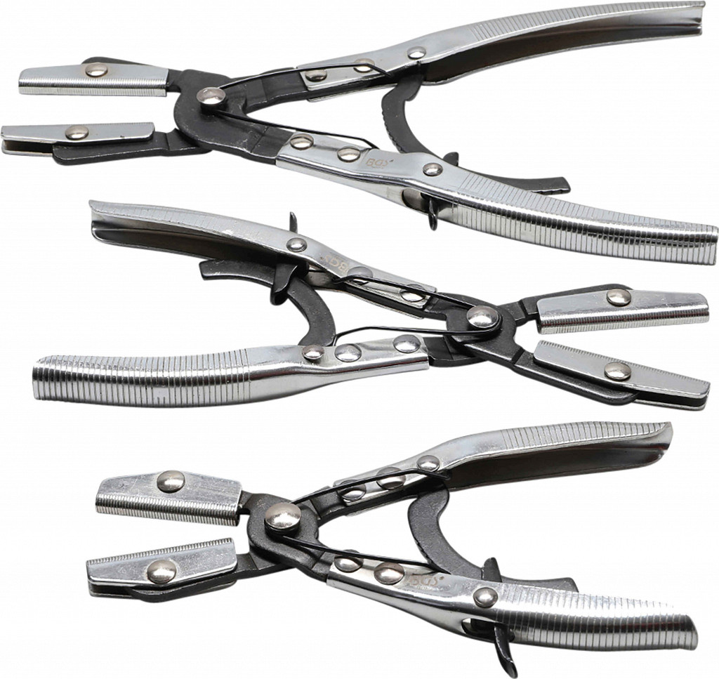 kovinsko ohišje; gibljive čeljusti; vsebuje: klešče za objemke cevi z max. odprtino 18 mm, dolžina 205 mm; klešče za objemke cevi z max. odprtino 20 mm, dolžina 245 mm; klešče za objemke cevi z max. odprtino 32 mm, dolžina 305 mm