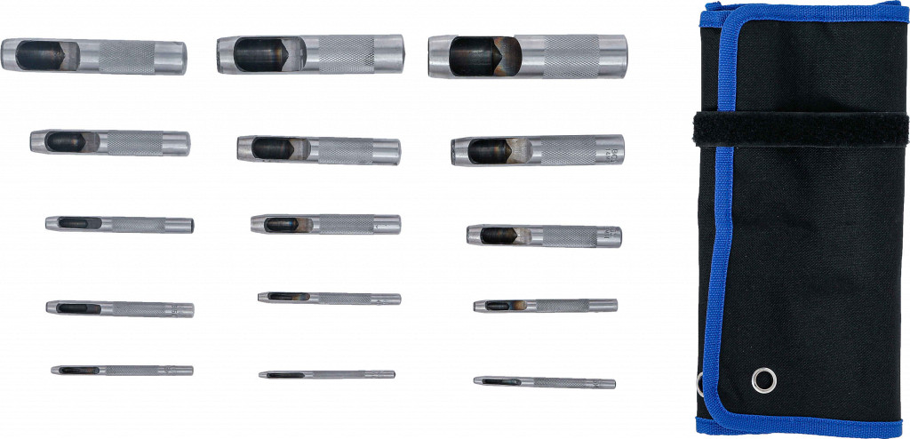 Za prebijanje lukenj različnih velikosti v mehkih materialih, kot so karton, usnje, guma ali tekstil, primeren tudi za prebijanje in izdelavo tesnil in tesnil okrogle oblike utrjene rezilne gredi z narezano površino za varno držanje vtisnjene informacije o velikosti v tetronski vrečki za enostavno shranjevanje in prevoz. 1 luknja | okrogla oblika | Ø 2,0 mm1 luknjar | okrogla oblika | Ø 2,5 mm1 luknjar | okrogla oblika | Ø 3,2 mm1 luknjar | okrogla oblika | Ø 4,0 mm1 luknjar | okrogla oblika | Ø 4,8 mm1 luknjar | okrogla oblika | Ø 5,5 mm1 luknja | okrogla oblika | Ø 6,4 mm1 luknjar | okrogla oblika | Ø 8,0 mm1 luknjar | okrogla oblika | Ø 9,5 mm1 luknjar | okrogla oblika | Ø 11,1 mm1 luknjar | okrogla oblika | Ø 12,7 mm1 luknjar | okrogla oblika | Ø 14,0 mm1 luknjar | okrogla oblika | Ø 15,8 mm1 luknjar | okrogla oblika | Ø 19,0 mm1 luknjar | okrogla oblika | Ø 22,0 mm