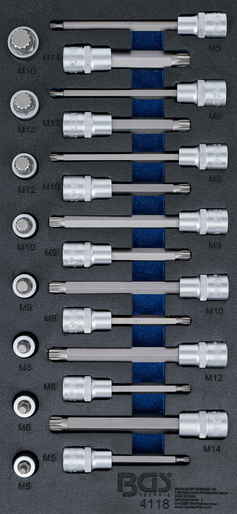 | Komplet nasadnih bit glav 1/2" XZN v peni 1/3 | z orodjem |