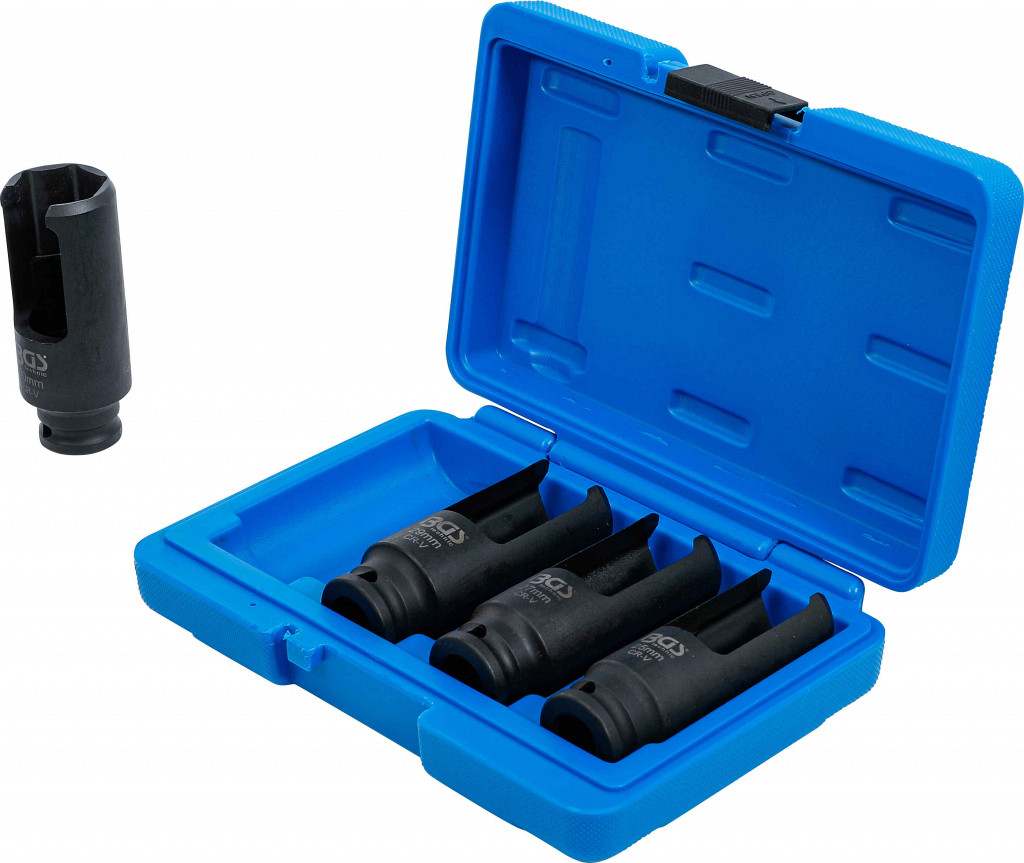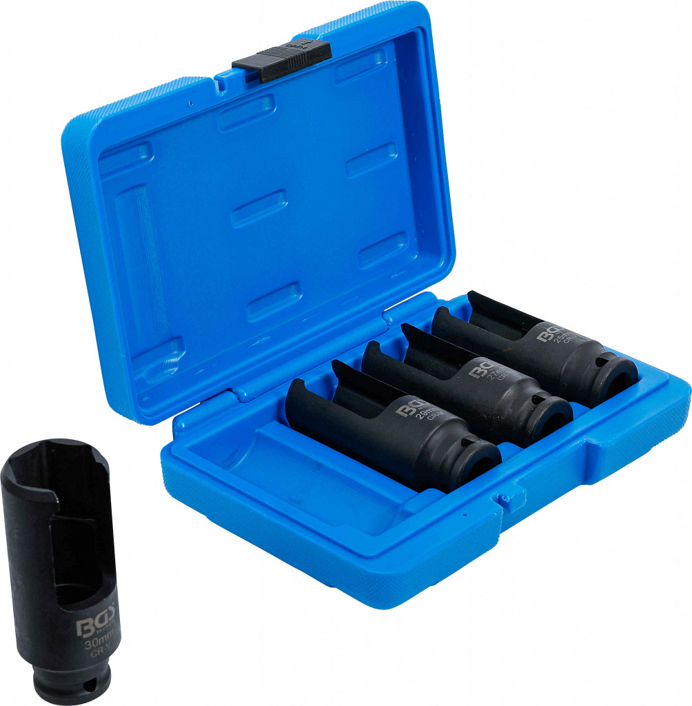Globoke nasadne vtičnice s širokimi izrezi za snemanje električnih enot injektorjev, velikosti 25, 27, 29 in 30 mm.