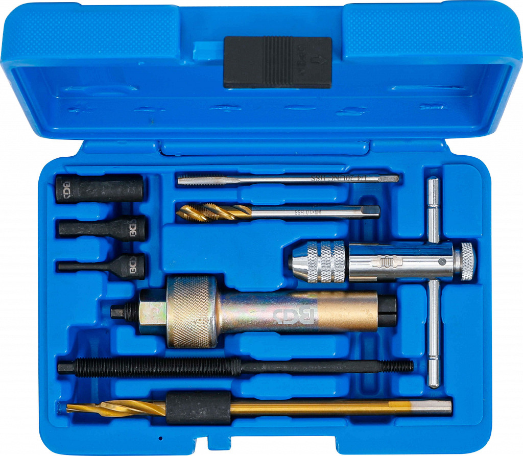Set za odstranjevanje zlomljenih žarilnih svečk M9 x 1.0. Primerno za Fiat motorje. Vsebina: stopničasti sveder z omejilnikom, navojni svedri, vtičnice,...