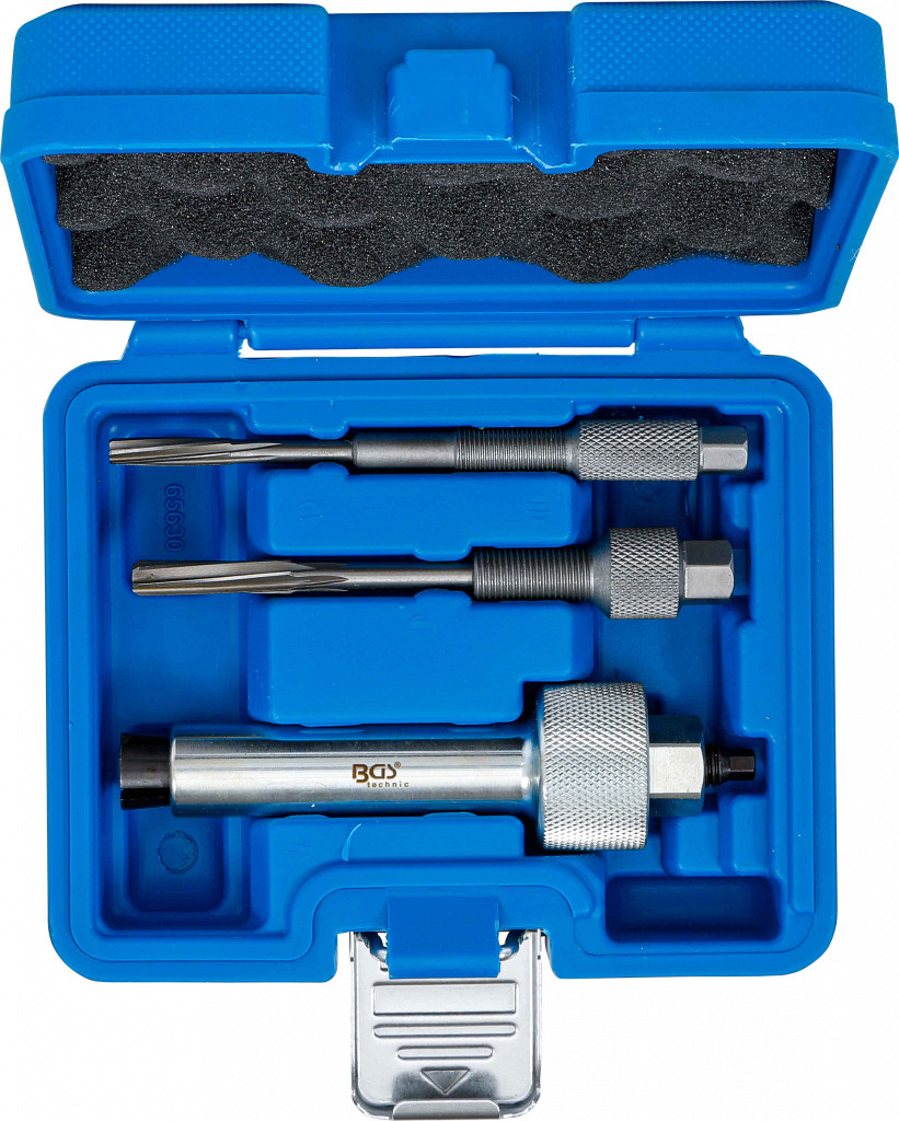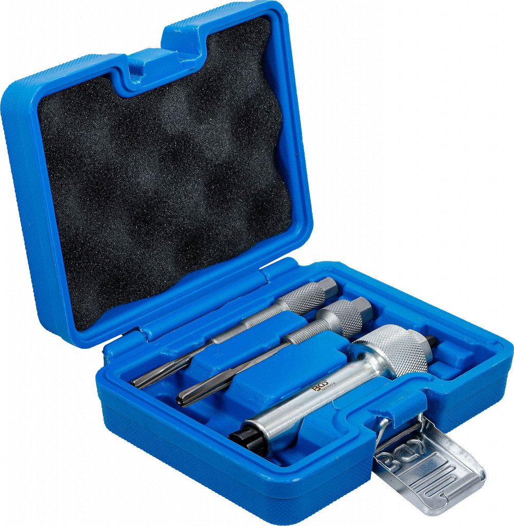 Komplet za čiščenje kanala žarilnih svečk in odstranjevanje zataknjenih svečk. Vključuje stožčasta razvrtala M10 in M12 ter izvlečni pripomoček, primerno za Mercedes-Benz CDI motorje.