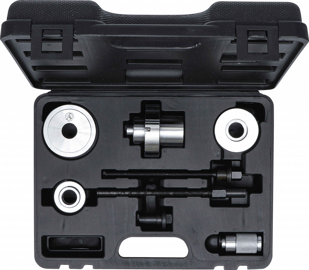 Za enostavno in varno odstranjevanje in zamenjavo tihih blokov na vozilu ni potrebno odstranjevanje, zmanjšuje delovno obremenitevvsebuje vreteno, podaljšek vretena, adapter za rameno matico vretena M10x1,25 iz ogljikovega jekla S45C, tlačni kos, centrirni obroč iz aluminijeve zlitine