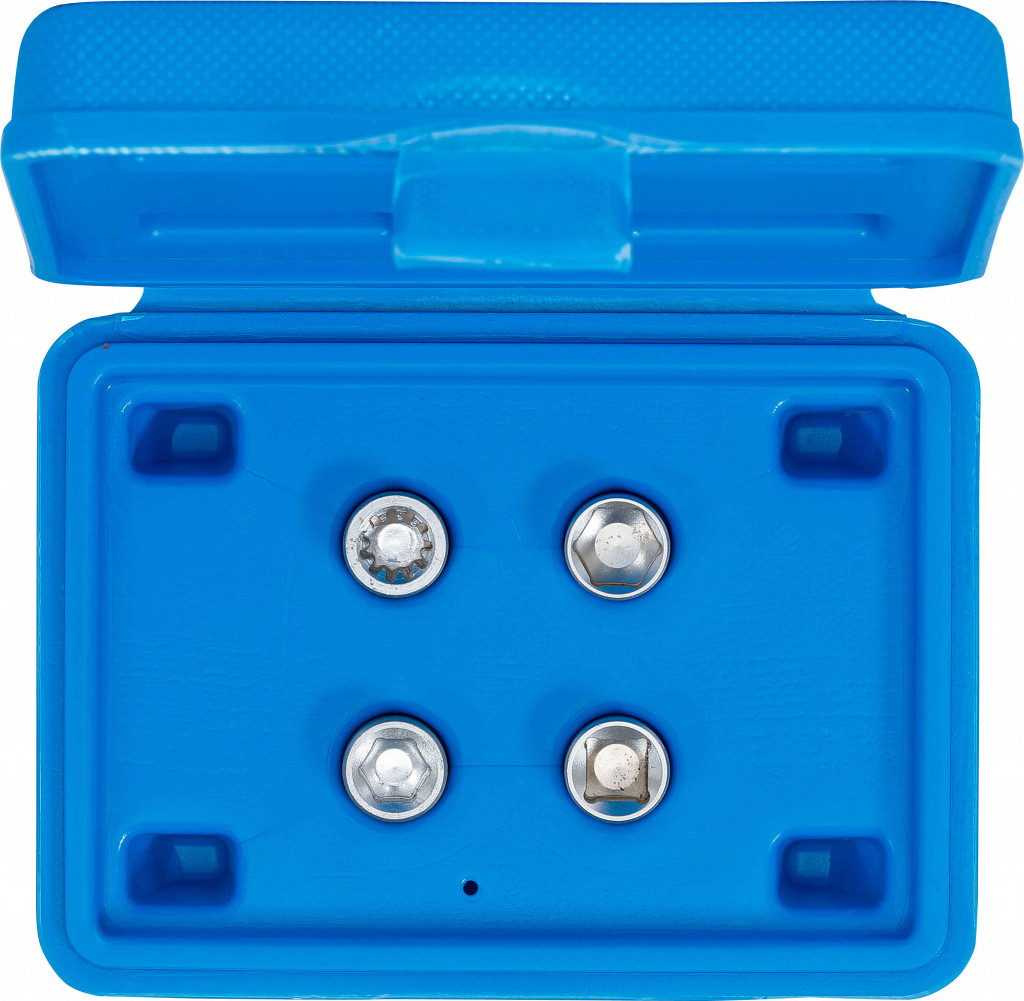 Orodje za nastavljanje zavornega bata pri menjavi ploščic ali delu na čeljusti, primerno za SAF/Knorr in druge tovorne zavore, pogon 12 mm z magnetom, priloženi nastavki 8 in 10 mm imbus, kvadrat 8 mm, 11-robni.