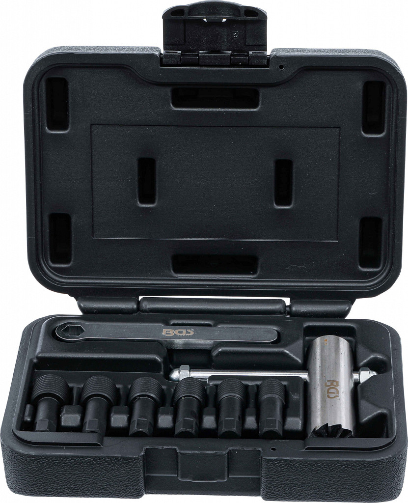 Rezalnik dosednih površin čepov oljnih korit, zagotavlja tesnost, primeren za navoje M12–M17, vključno s centrirnimi vijaki in orodjem.
