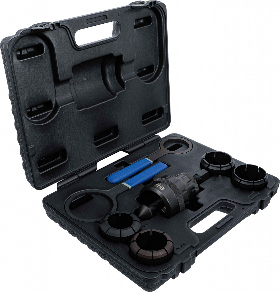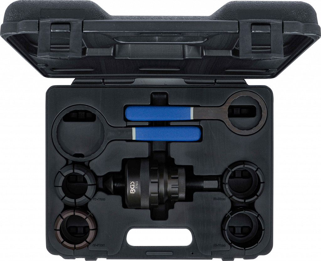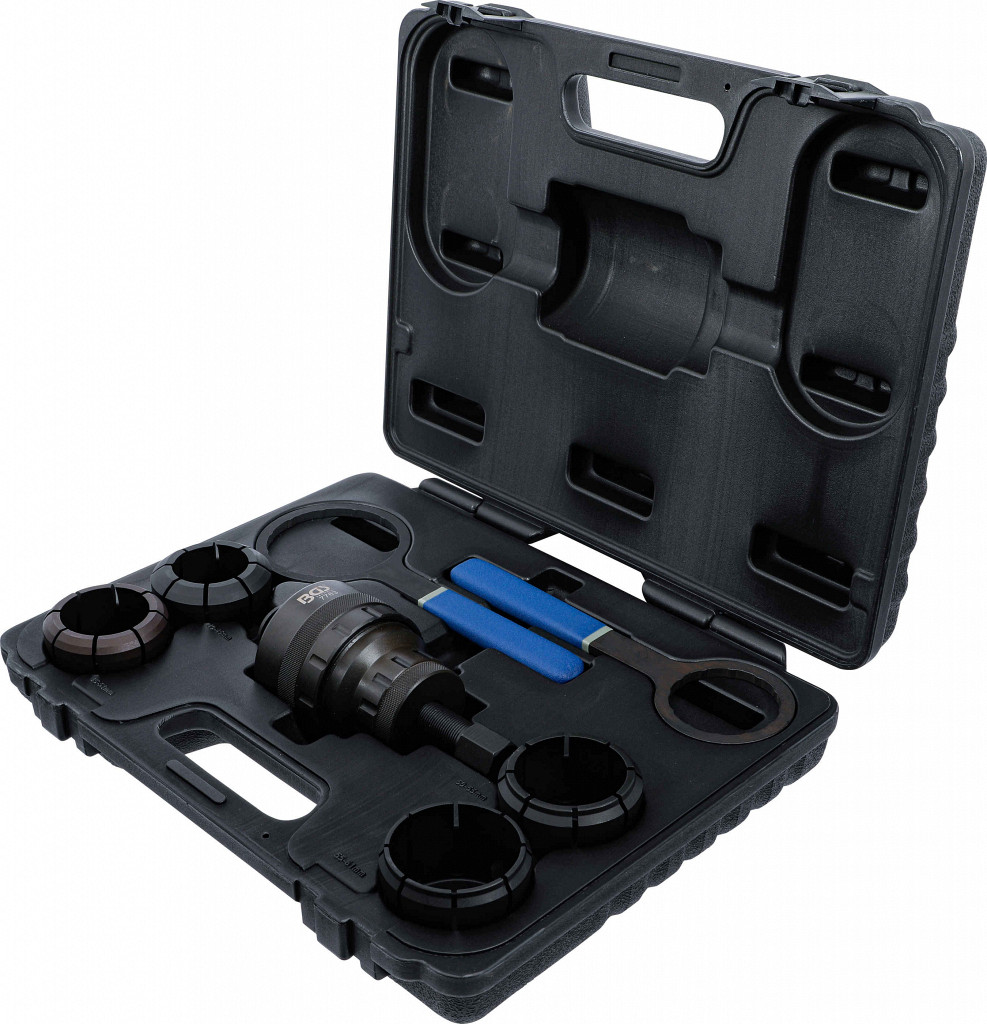 Univerzalni snemalec notranjih obročev ležajev pesto koles, primeren za obroče premera 40–62 mm, v kompletu 4 snemalci, 2 ključa, glavno telo in vreteno M20...