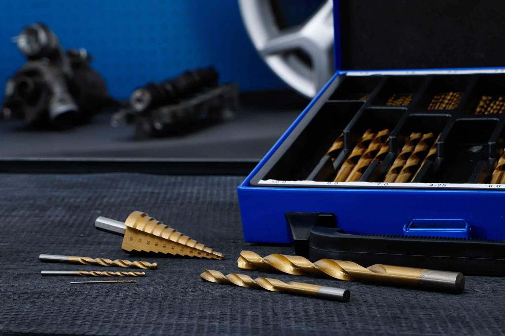Komplet spiralnih in stopničastih svedrov HSS titanov premaz