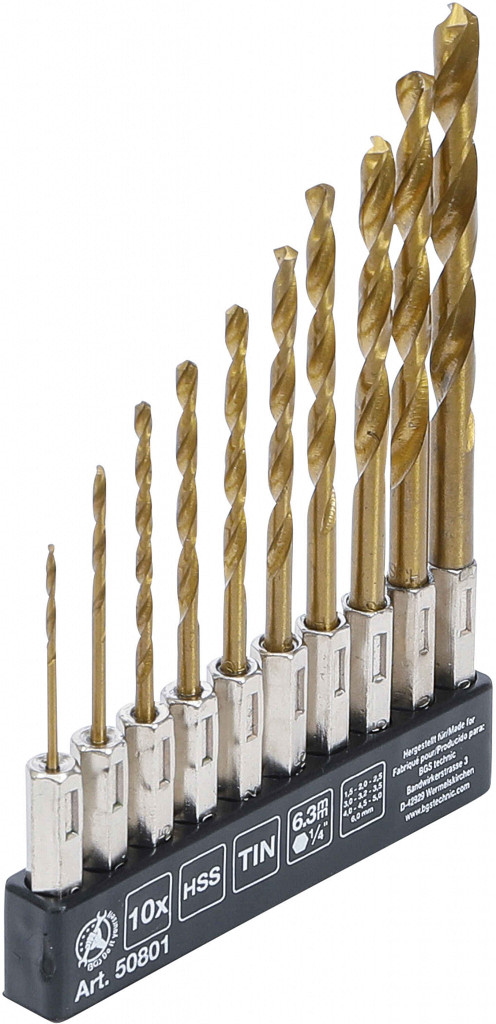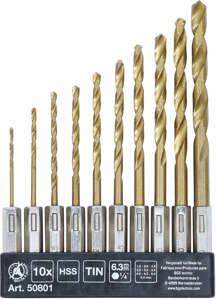 Profil pogona: Zunanji šesterokotnik; Velikost profila pogona, palec: 1/4 "; Velikost profila pogona, metrična: 6,3 mm; Bruto teža: 160 g; Material: jeklo HSS; Površinska obdelava: titan-nitridiran; Embalaža primerna za stensko obešanje: Da