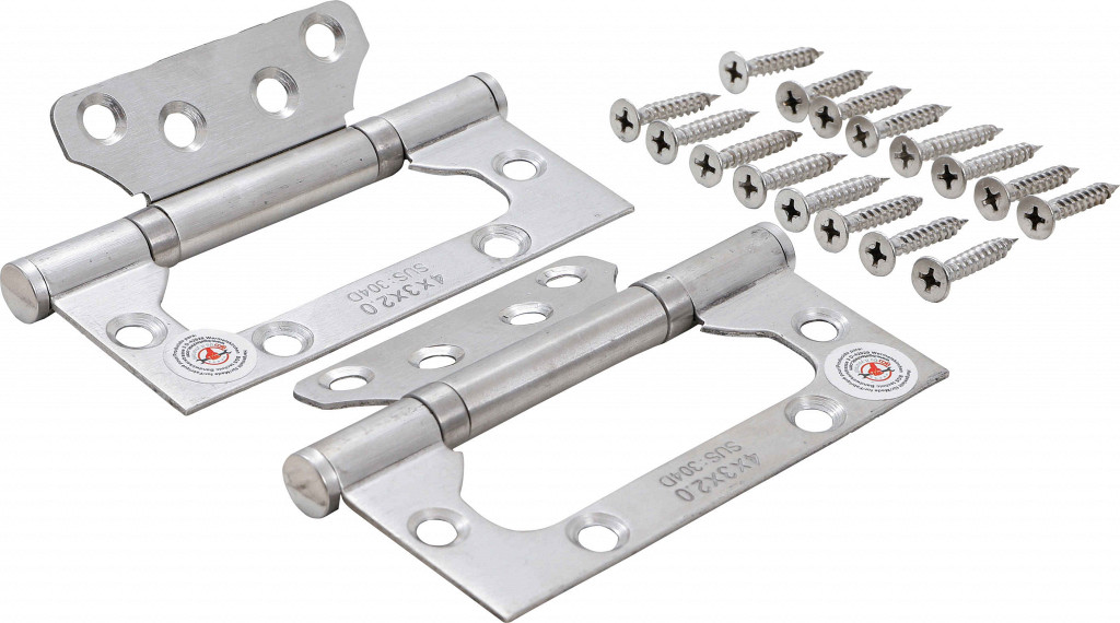 Vdolbine izvrtane luknjedolžina: 100 mmširina: 50 mmglobina: 2 mmmaterial: nerjaveče jeklo.obseg dobave:. 2 tečaja16 vijakov