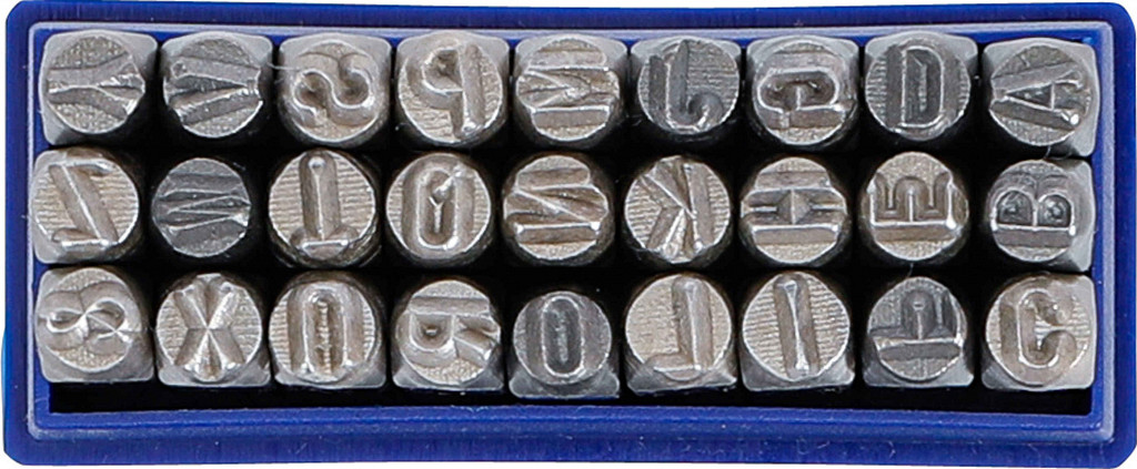 Primeren za vtiskovanje črk v jeklo in železo po DIN 1451; graviranje na odmikano površino z omejitvijo globine; velike črke A do Z; znak/znaki "&"; pakirano...