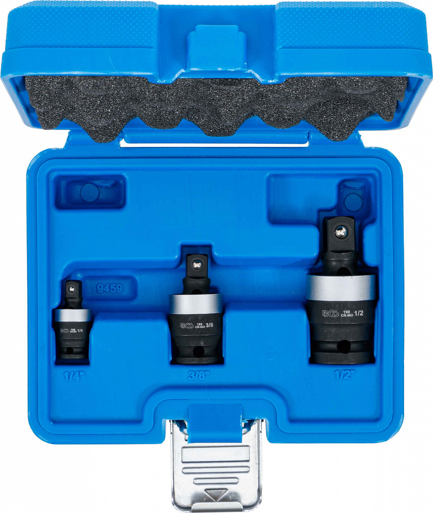 Adapterji za ročne in udarne raglje, pritrjevanje z zatičem in O-obročem, vključuje: 6,3 mm (1/4"), 10 mm (3/8") in 12,5 mm (1/2") zunanji kvadrat.