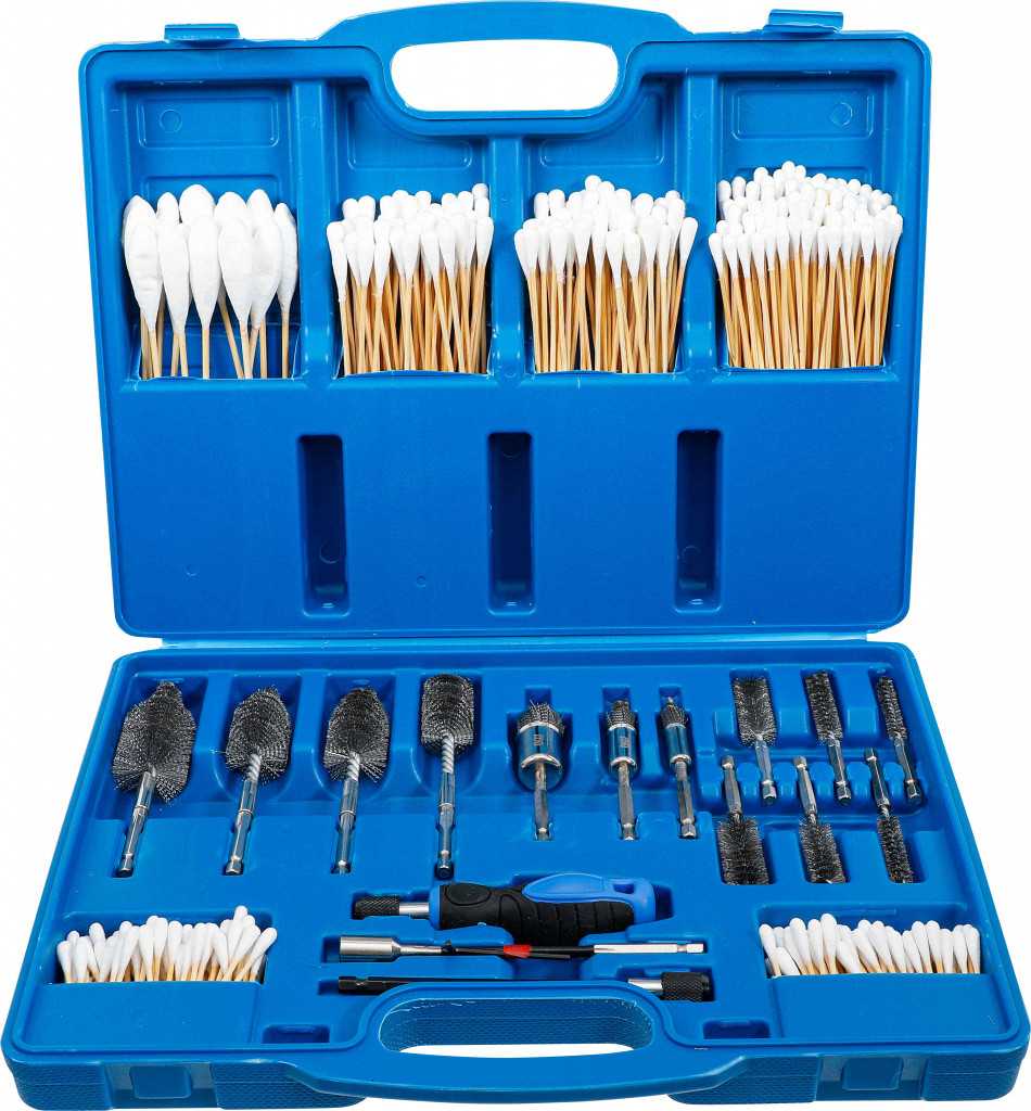 Za učinkovito čiščenje sedežev in gredi injektorjev na dizelskih motorjihprimerno za široko paleto vozil in motorjevkompaktna sestavačistilne ščetke različnih oblik in premerov.obseg dobave:... 4 vijačne žične ščetke, Ø: 34,9 - 30,2 - 29,5 - 25,1 mm3 dvostopenjske žične ščetke, Ø: 12,1 - 19,1 - 25,4 mm6 žične ščetke, Ø: 8 - 10 - 12 - 15 - 17 - 19 mm1 držalo ročaja krtače, s hitro spojko, notranji šesterokotni pogon 6,3 mm (1/4"), 1 togi podaljšek, s hitrim podaljškom, zunanji šesterokotni pogon 6,3 mm (1/4"), 1 prilagodljiv podaljšek, s pritrdilnim vijakom, zunanji šesterokotnik 6,3 mm (1/4") pogončistilni brisni asortiman, različne dolžine, Ø: 5 - 20 mm