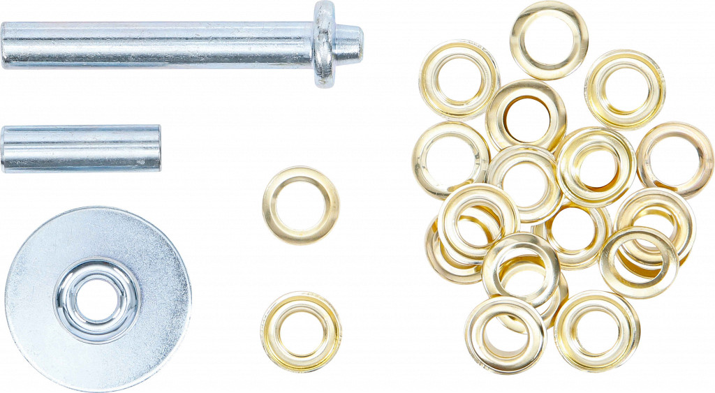 Za vgradnjo okroglih očescev v samo nekaj korakih okrepite luknjane luknjesestavljen iz udarca, nakovala in prebijanja stampincl. 12 okroglih očescev za ojačitev luknjanih lukenj v usnju, ponjave, ponjave iz blaga in drugih izdelkov po meri Vsako očesce je sestavljeno iz zgornjega dela (21 x 12,5 mm) in spodnjega dela