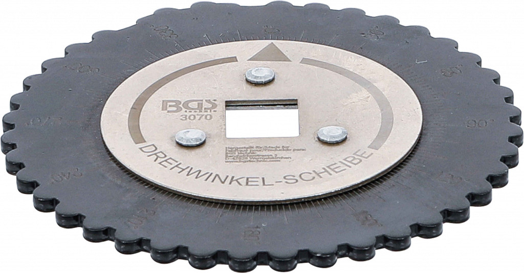 Za uporabo v kombinaciji z momentnimi ključi, ragljami, nasadnimi ključi in dodatki. Natančna nastavitev zahtevanega kota. Lestvica Ø 90 mm, 0 - 360°, delitev po 2°.